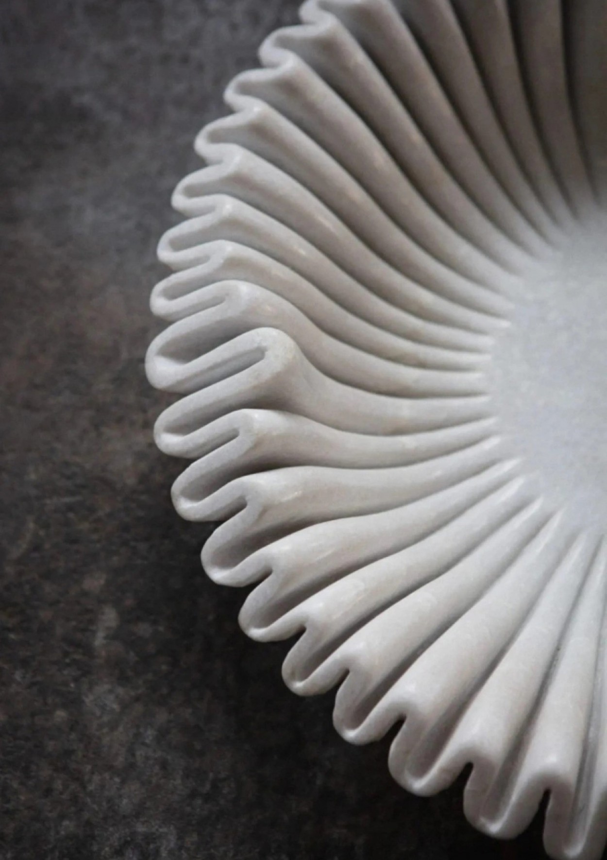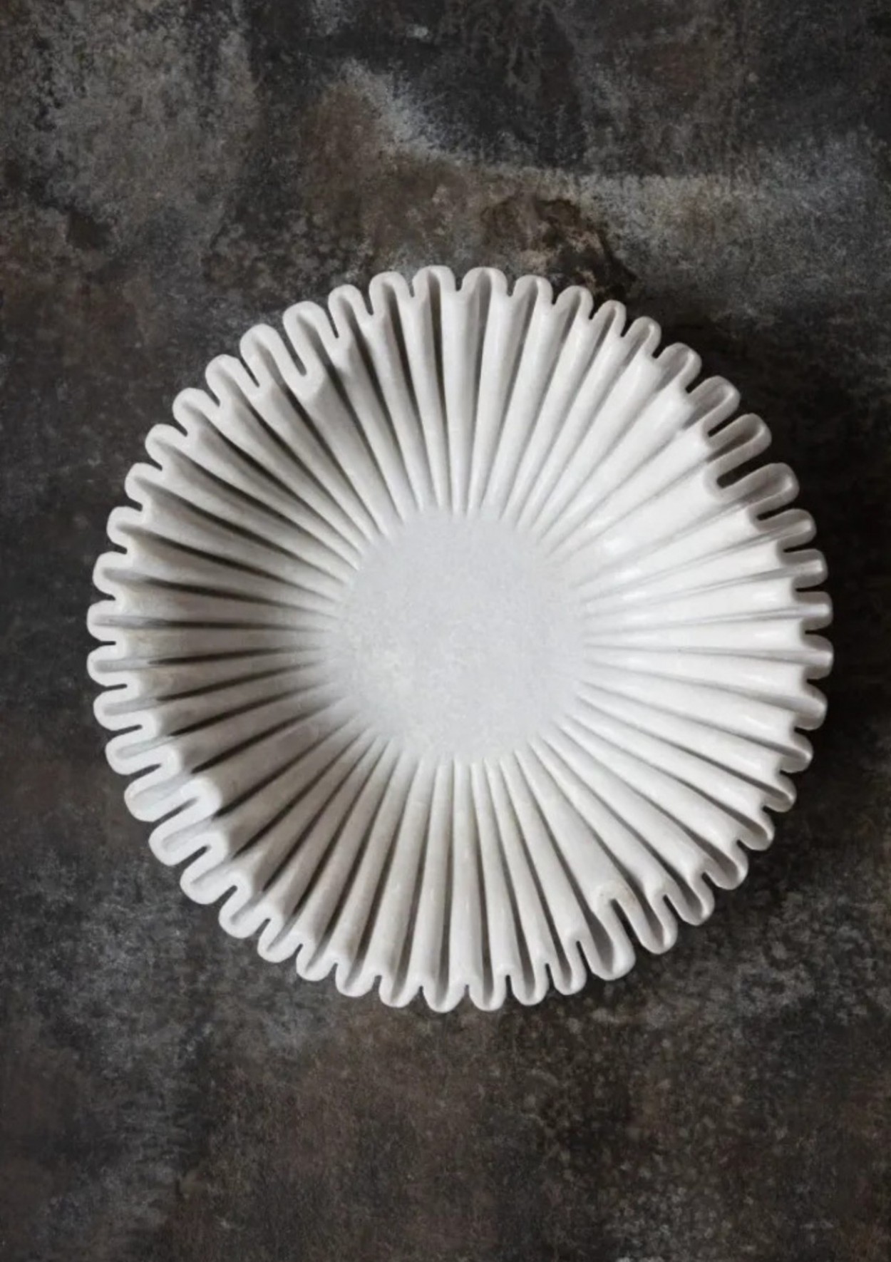 Plato artesanal de mármol blanco. El mármol es una piedra natural cuya apariencia puede variar. Por lo tanto, cada cuenco es único y pueden presentarse diferencias.