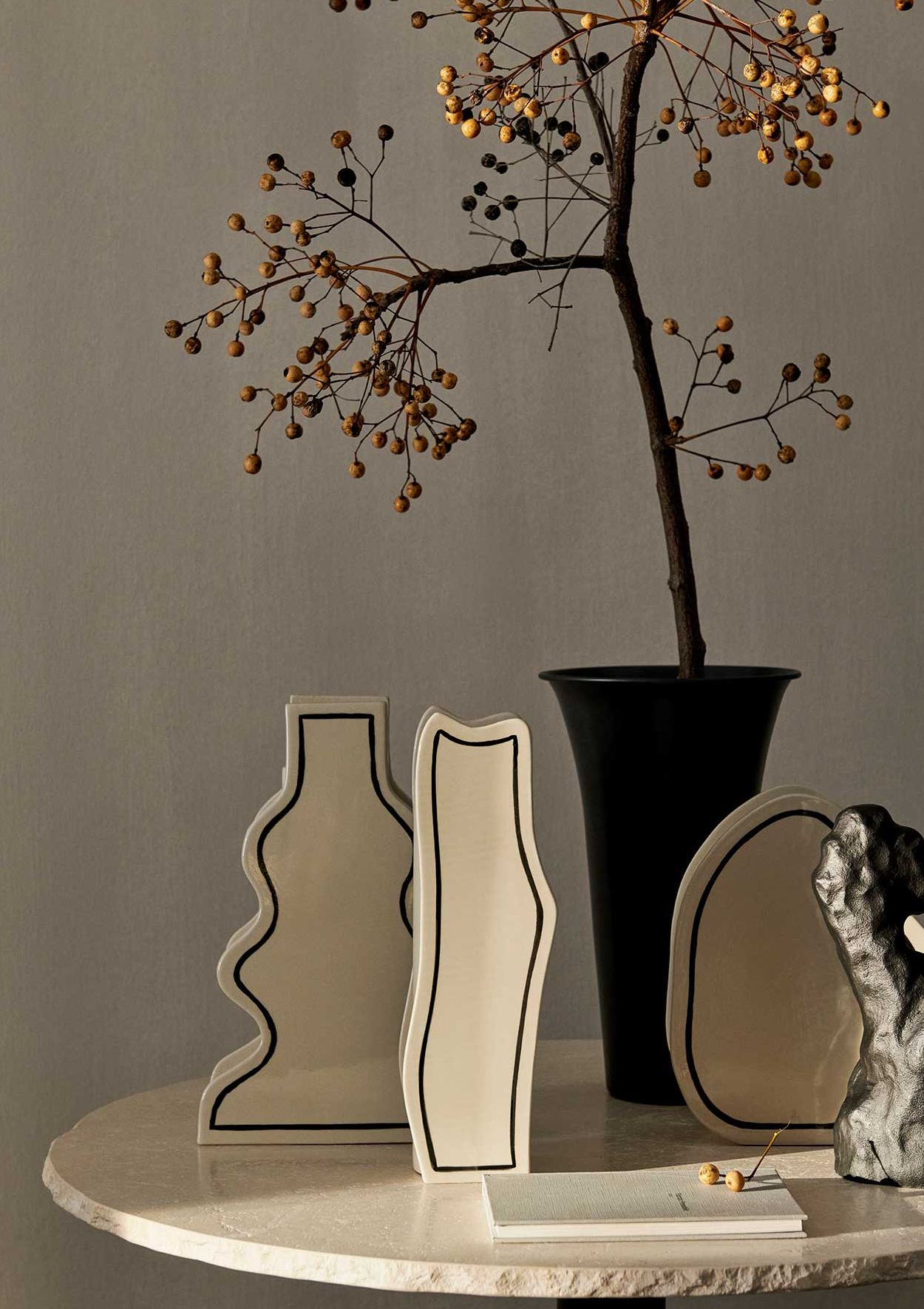 Paste Vase juega con siluetas 2D y 3D para crear un atractivo accesorio para el hogar. Consta de dos láminas planas de cerámica idénticas unidas a un jarrón cilíndrico, el diseño distintivo da la impresión de un efecto 3D de copiar y pegar. Los contornos negros compensados han sido pintados a mano, lo que le da al jarrón una expresión lúdica. Llene el jarrón de pasta con sus flores favoritas y colóquelo en el alféizar de la ventana, en la mesa del comedor o en el estante de la sala de estar para darle a su espacio una apariencia distintiva.