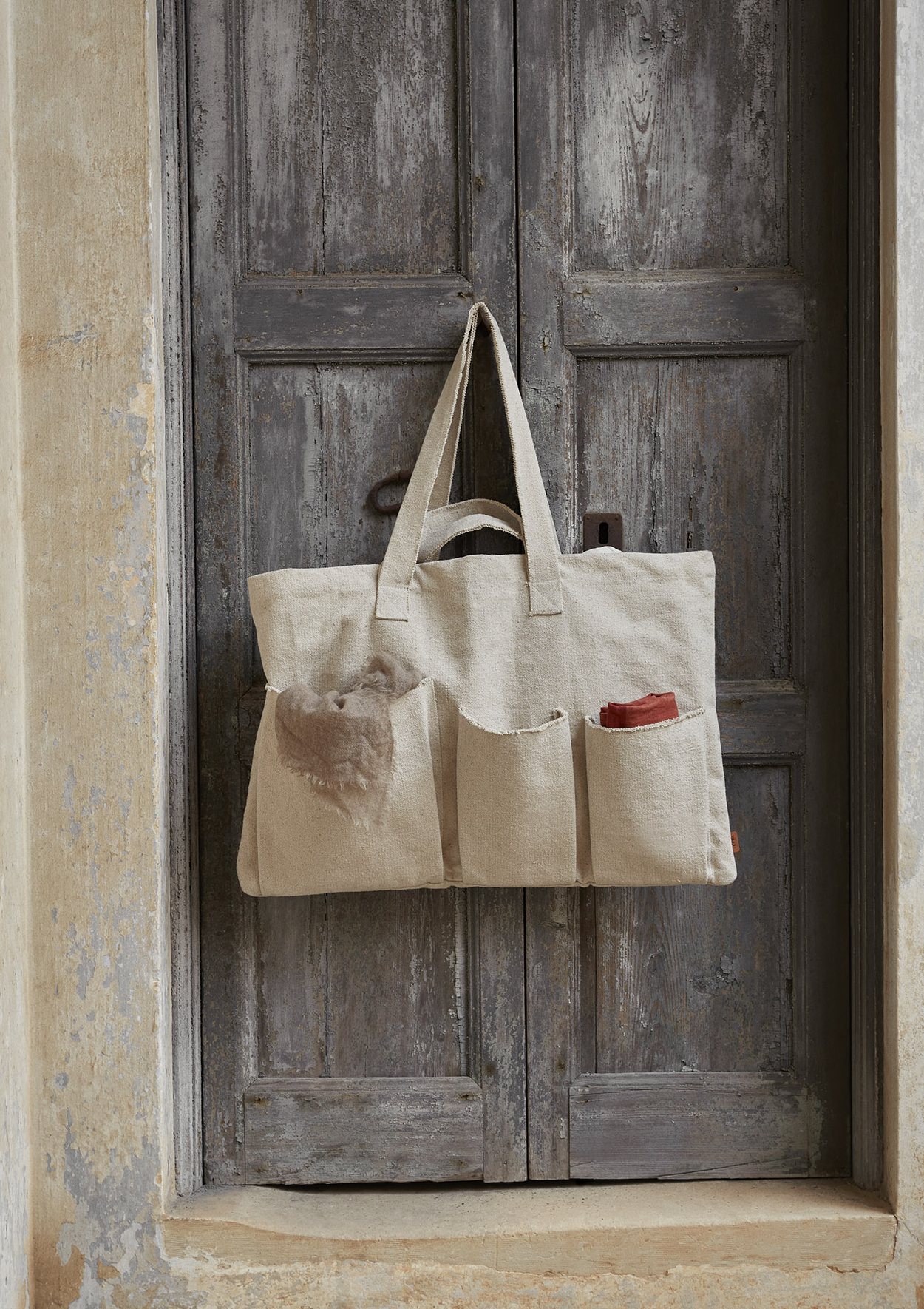 Made entirely from heavyweight, GOTS certified, organic cotton, the Pocket Weekend Bag is a practical and elegant packing solution for shorter getaways. Featuring different-sized external pockets, the oversized tote bag also has dual straps and a beautifully textured surface, while the edges have been subtly left frayed for a casual expression.