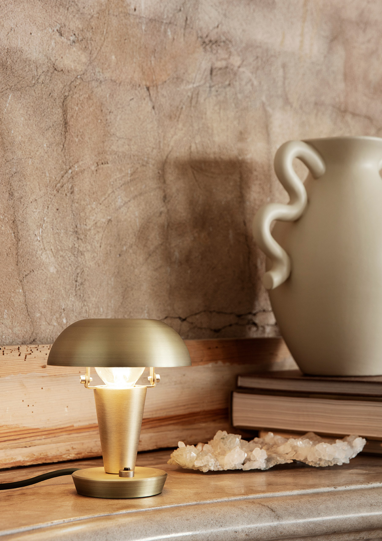 The Tiny Lamp works as a functional and decorative light source in any room. Due to its petite size, it can effortlessly be placed on tables, shelves or other small corners of your home. Inspired by industrial Art Deco, it exudes simplicity in both expression and its metal construction. The useful tipping head makes it possible for you to tilt the shade to create a different look of the lamp, as well as to fit the atmosphere of the room.
