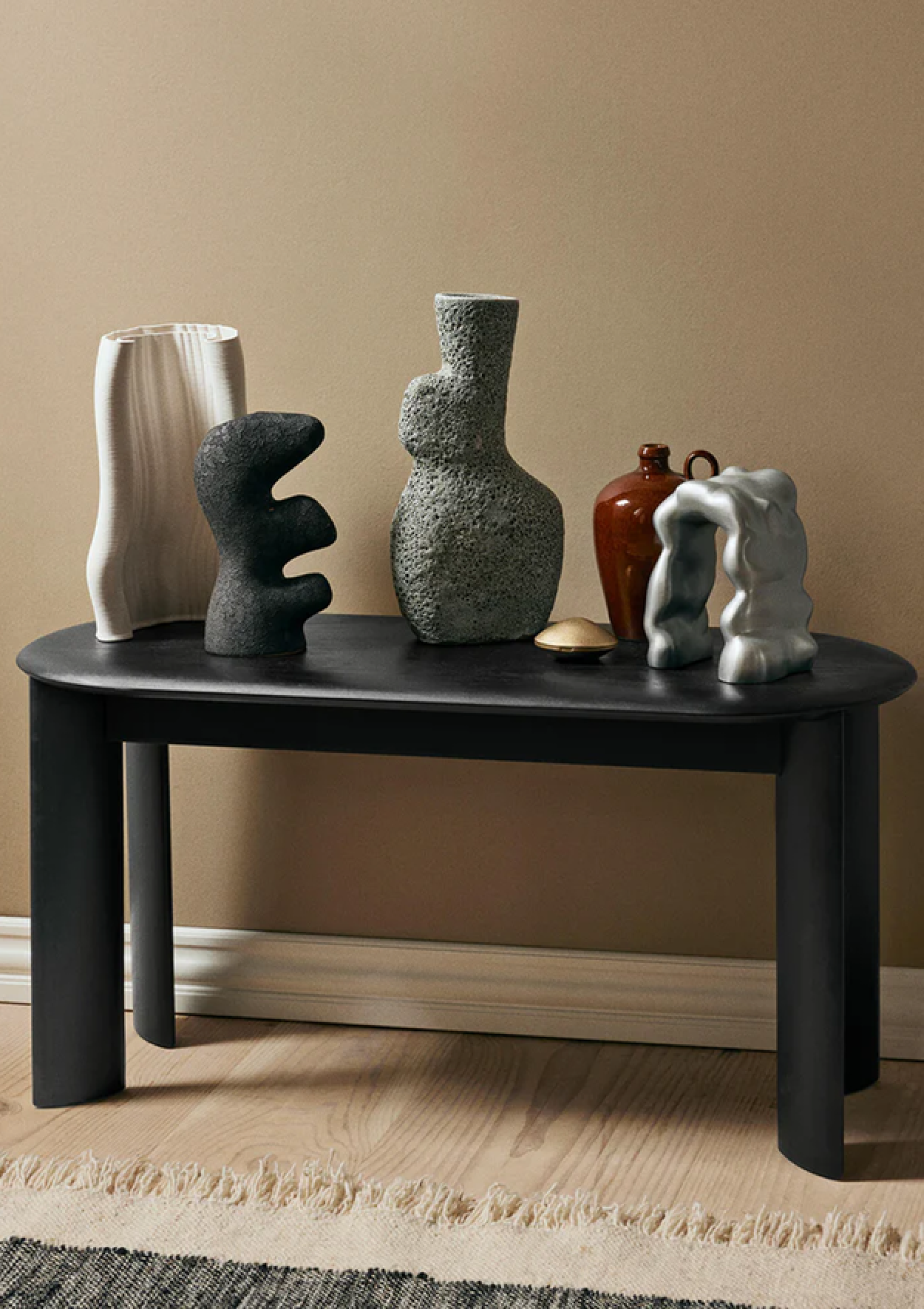 Los jarrones Yara combinan tonos terrosos y texturas rugosas para formar una expresión orgánica. Elaborada en cerámica, cada pieza está recubierta con un esmalte reactivo que garantiza una apariencia única y variada. Inspirados en las figuras de piedra y mármol de las Cícladas, los jarrones tienen una expresión abstracta y una forma sencilla.